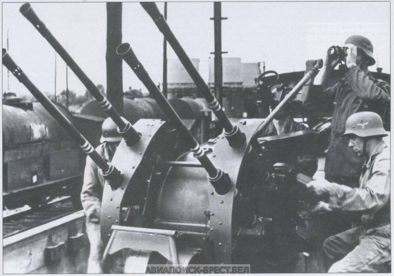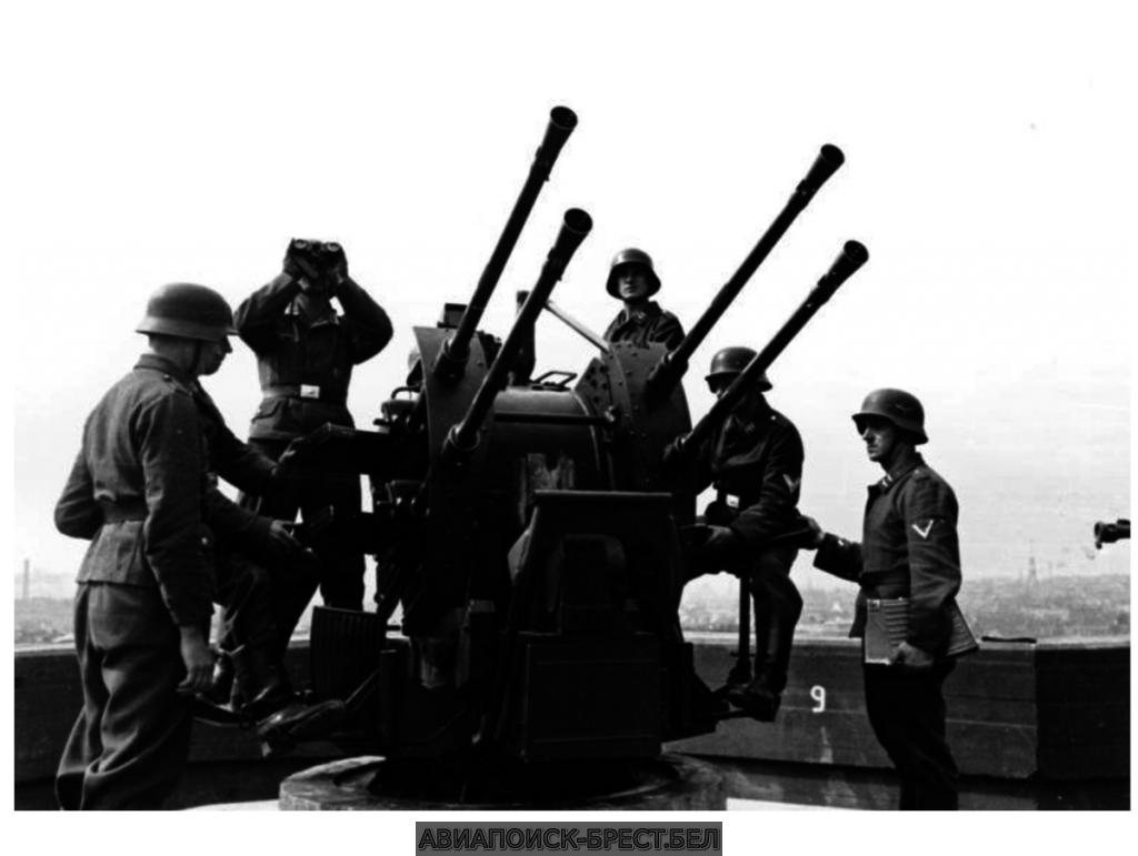 Брест-Литовск на июль 1944.г охранялся немцами эшелонированной зенитной обороной -1 й эшелон по наружному периметру — располагались зенитные батареи крупного калибра — 88 мм .- 128 мм совместно с прожекторами .
